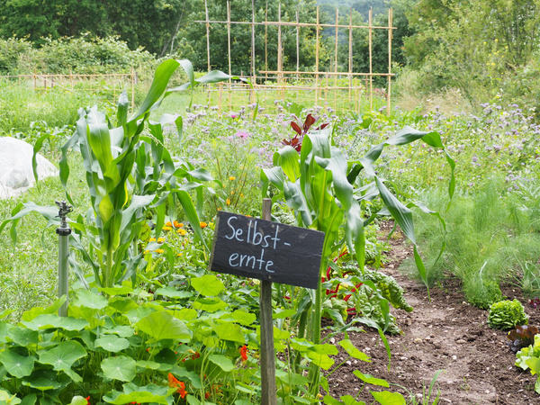 Gleichzeitig ist der vordere Teil unseres Naturgartens der Schauplatz des großen Jungpflanzenverkaufs: Im Frühjahr verwandelt sich die Fläche in eine reiche Auswahl von verschiedensten Sommerblumen, Gemüse, Kräutern und Stauden. Letztere lassen sich noch bis in den Herbst bei wechselndem Sortiment erwerben.