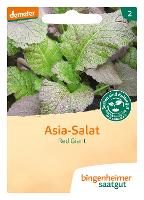 Asia-Salat Sorte mit ovalen, leicht gezackten Blättern mit roten Blattadern. Scharfer Senfgeschmack mit gutem Aroma, dass jedem Salat eine leckere, würzige Note gibt. Die Samen dünn aussäen