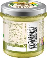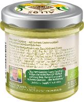 Zucchini* (44%), gelbe Paprika* (21%), Sonnenblumenkerne*, Sonnenblumenöl*, Agavendicksaft*, Kartoffelstärke*, Zitronensaftkonzentrat*, Balsamessig* (Weißweinessig*, Traubenmostkonzentrat*), Meersalz, Currypulver* (0,6%) (Koriander*, Kurkuma*, Fenchel*, Bockshornklee*, Kümmel*, Ingwer*, Zwiebel*, Paprika*, Knoblauch*, Zimt*, Chili*), Zwiebelpulver*, Knoblauchpulver*, schwarzer Pfeffer*, Verdickungsmittel: Johannisbrotkernmehl*.| Energie | Fett | gesättigte Fettsäuren | Kohlenhydrate | Zucker | Ballaststoffe | Eiweiss | Salz |