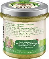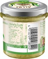 Erbsen* (33%), Zucchini* (14%), Sonnenblumenkerne*, Basilikum* (10%), Sonnenblumenöl*, Karotten* (6%),Agavendicksaft*, Zitronensaftkonzentrat*, Kartoffelstärke*, Knoblauch* (2%), Meersalz, Zwiebelpulver*, Minze*, Verdickungsmittel: Johannisbrotkernmehl*, Chilipulver*.
