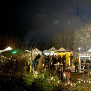 KI generiert: Das Bild zeigt die Weihnachtsferien-Öffnungszeiten des Apfelbacher Biohofs für 2024/25. Es listet die speziellen Öffnungszeiten und Schließtage über die Feiertage, mit festlichen grafischen Elementen im Hintergrund.
