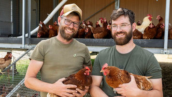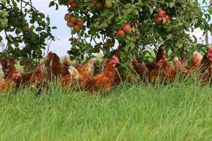 Wir von Bio-Bochröder achten sehr auf eine naturnahe und wesensgerechte Haltungsart unserer Tiere. Nur so können wir die Gesundheit und Zufriedenheit unserer Hühner garantieren. Diese leben in einem Freilandmobil, mit dem sie regelmäßig auf ein neues Stück Wiese umziehen und somit immer wieder frisches Kleegras und Luzerne zum Picken erhalten. Durch das stetige Versetzen der Freilandmobile, fahren wir Parasiten und Krankheiten einfach davon. Als Sonnen- und Greifvogelschutz pflanzten wir auf 12 ha Walnussbäume für die Hühner an. Die ehemaligen Waldbewohner fühlen sich dort besonders wohl. Im großzügigen Grünauslauf können die Hühner nach Lust und Laune scharren, sonnen- und staubbaden sowie nach Insekten und Würmern picken. Zudem leben Brüderhähne bei den Legehennen, um die Sozialstrukturen und das Wohlbefinden der Hühner zu verbessern.